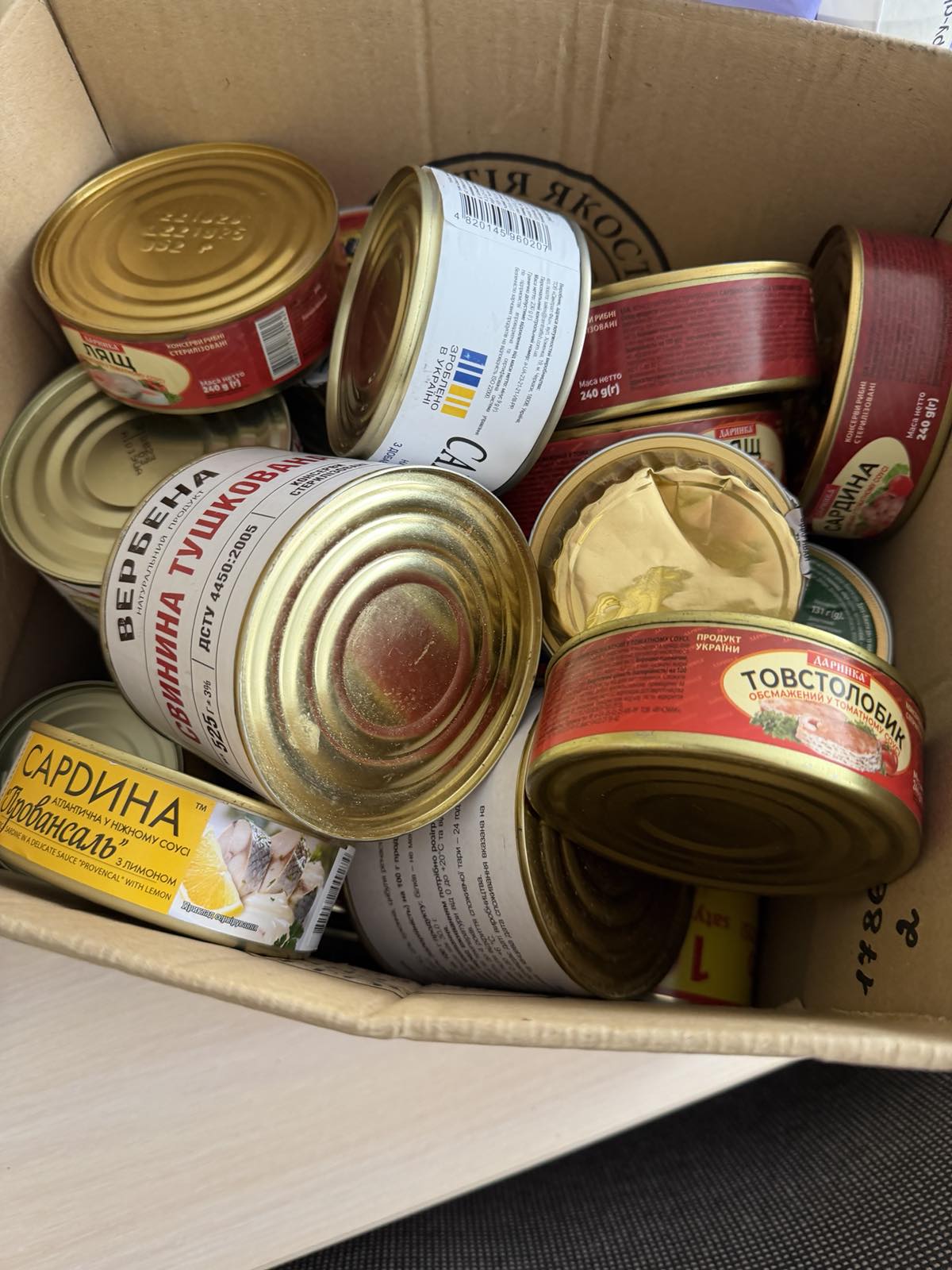 - 436 банок консервів, 12 – паштетів, 4 скляні банки консервації;