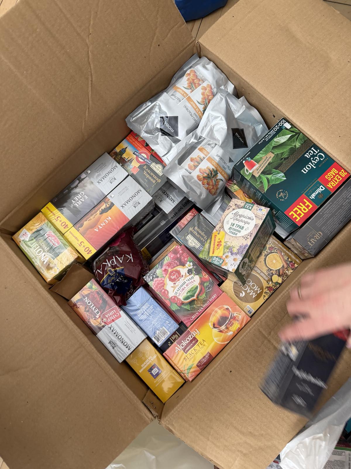 - 185 упаковок чаю;