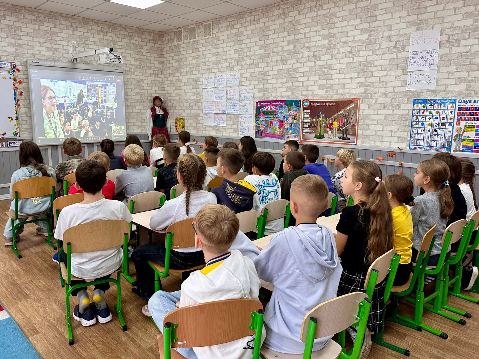 Під час зустрічі учні розповідали про своє рідне місто, школу та захоплення. Британські школярі натхненно виконали всій шкільний гімн. У відповідь наші діти щиро заспівали «Ой у лузі червона калина», створивши атмосферу єдності, гордості та дружби ????????
